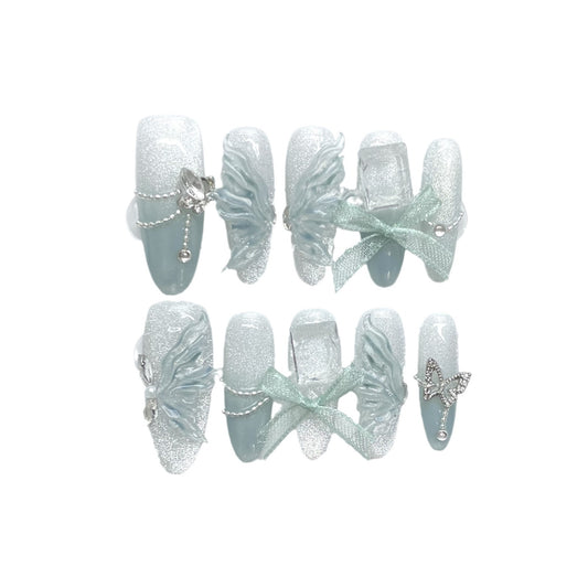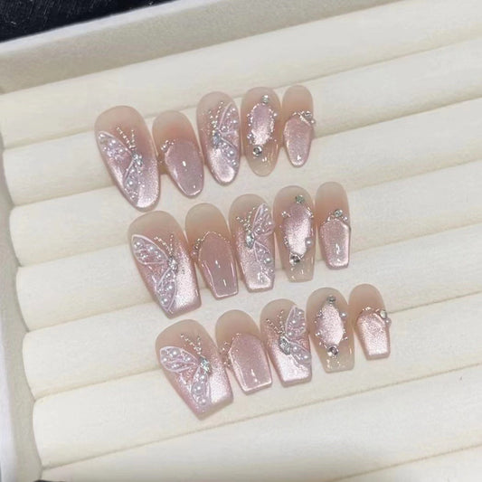 Jade Butterfly Nail art smoothie cat eye pure handmade press-on nails